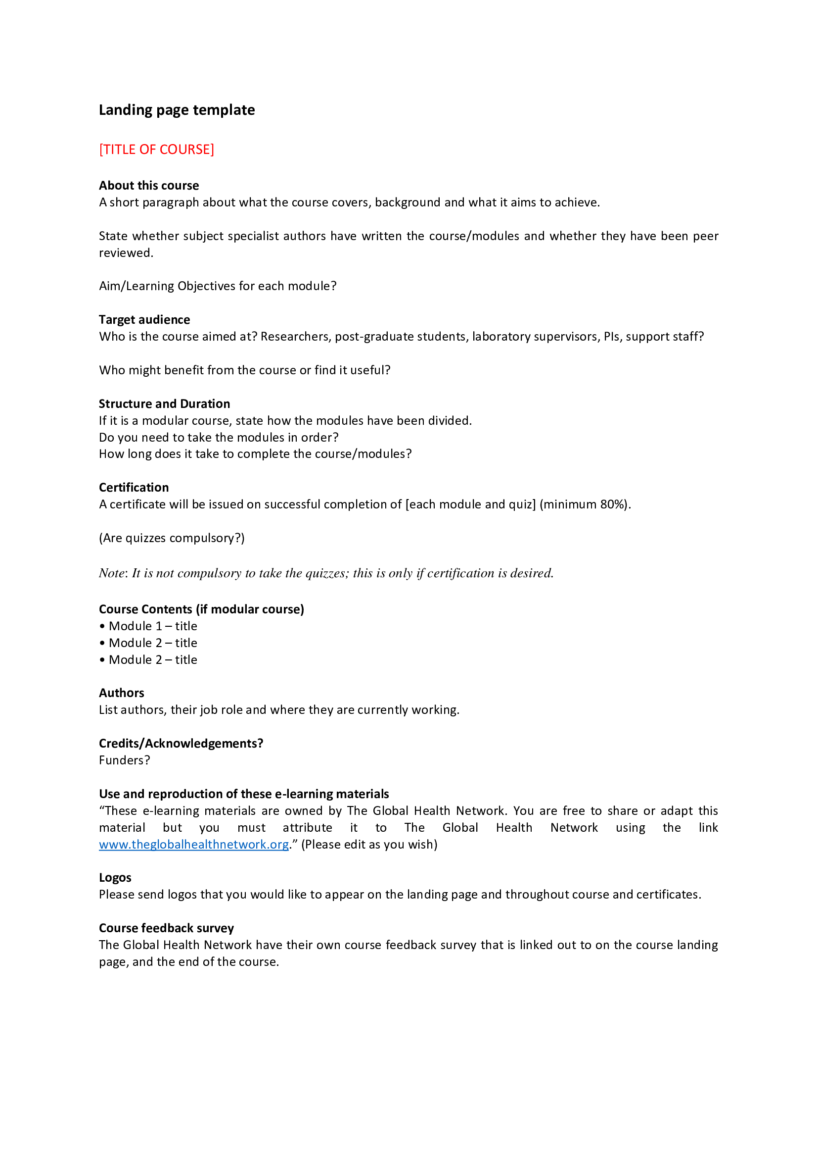 Appendix 3 - Course landing page template (Click to download) |