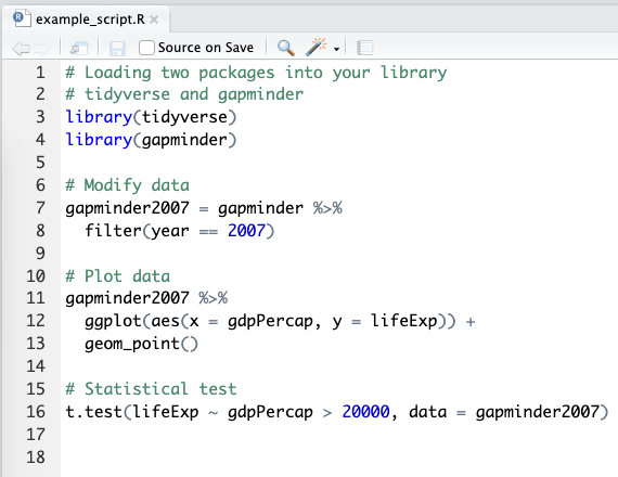 An example R script from RStudio.